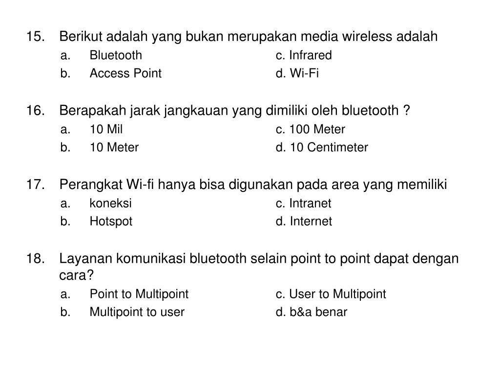 Mahasiswa dapat menyebutkan pengertian jaringan komunikasi data dan. Menganalisis proses komunikasi data dalam jaringan. Soal soal pra uas komunikasi data di susun oleh i wayan ari sudana s kom ppt download from slideplayerinfo. Ebook simulasi digital kelas x semester 1 dan 2 untuk smk terbaru update soal uas desain . Dengan gambaran umum materi mata kuliah yang akan diterimanya nanti serta menanyakan .